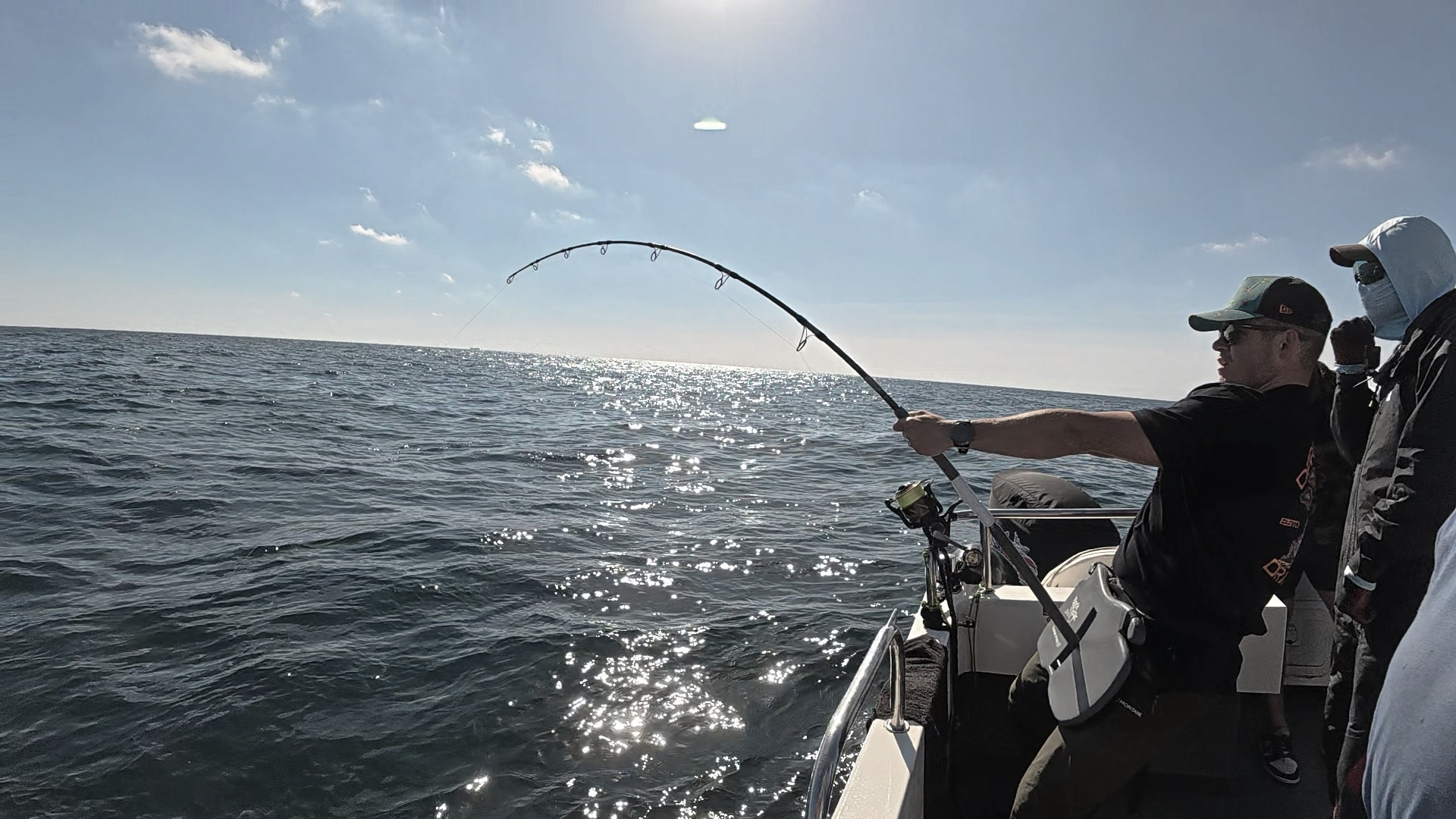 Stand-up fishing is the method used to fight Atlantic bluefin tuna while remaining upright and directly connected to the rod. Rather than transferring load into a fighting chair, the angler absorbs pressure through the body while maintaining balance on a moving boat. This approach allows drag pressure to be applied immediately and consistently while the skipper manoeuvres to control the fish.